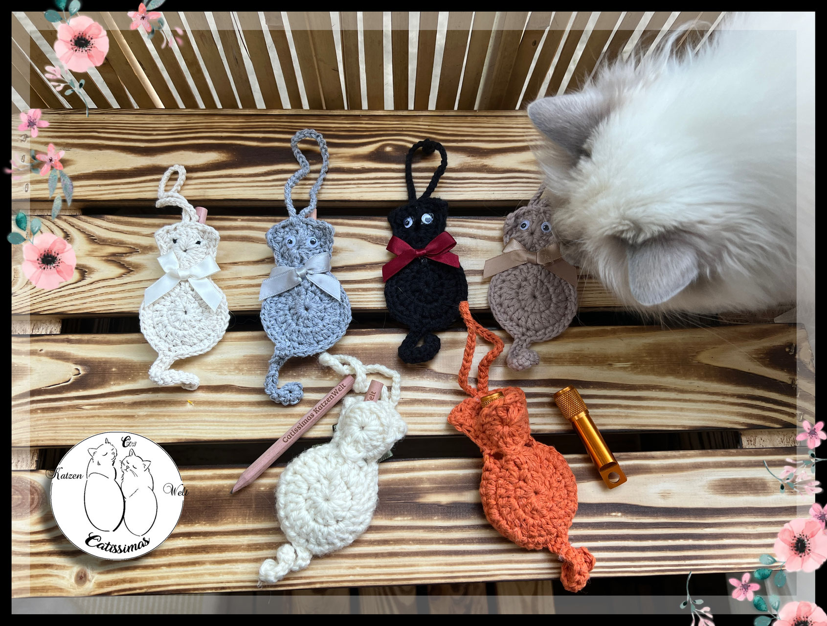 Anmerkung: Der Anhänger hat aufgeklebte Wackelaugen. Solltet ihr einen als Spielzeug für eure Katzen haben wollen, können auch kleine Äuglein aufgenäht werden.